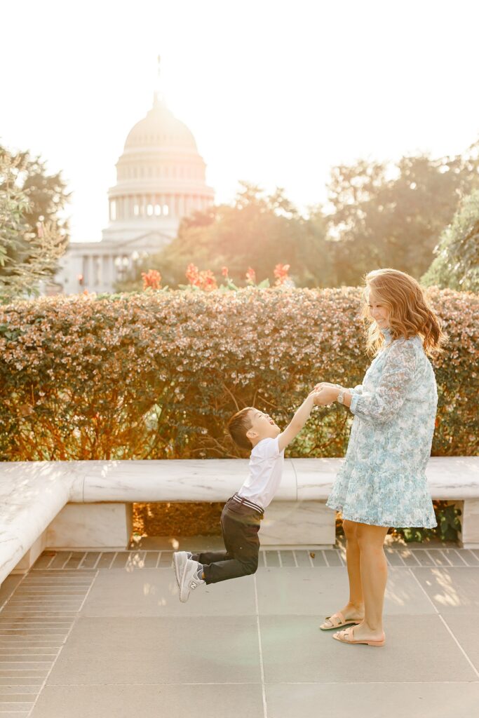I love photographing everything here—from quick mini and midi sessions to full family sessions. Whether you’re hoping for updated portraits, milestone photos, or an annual gallery wall refresh, the Supreme Court Gardens gives us the perfect mix of iconic DC style and warm, welcoming scenery.