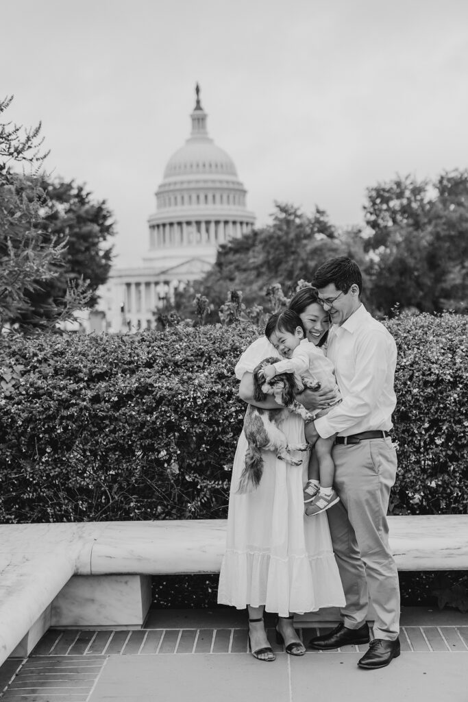When it comes to iconic Washington, DC locations for family photos, the Supreme Court Gardens is one of my absolute favorites. Tucked beside the Supreme Court, this location offers a mix of stunning DC architecture and lush seasonal greenery, making it an incredible backdrop year-round.