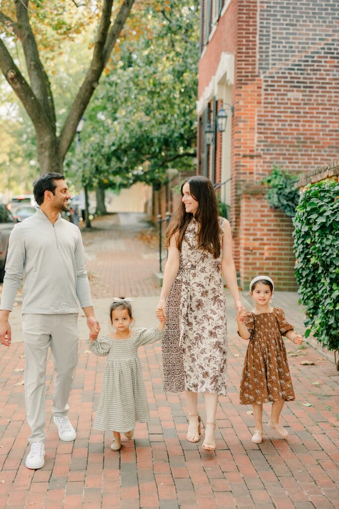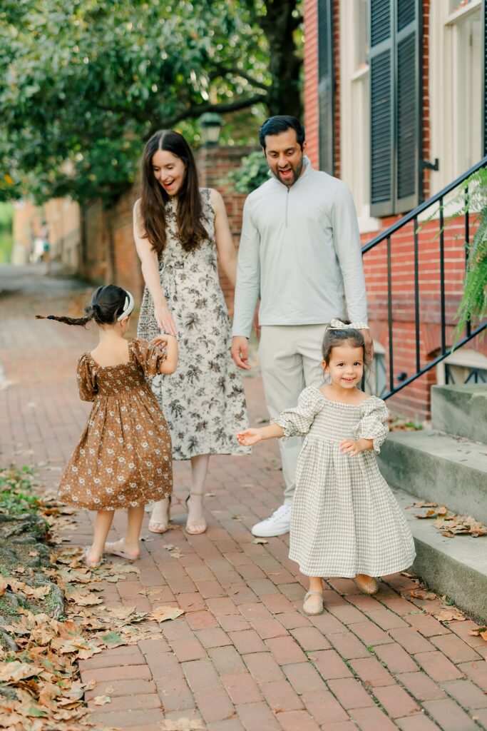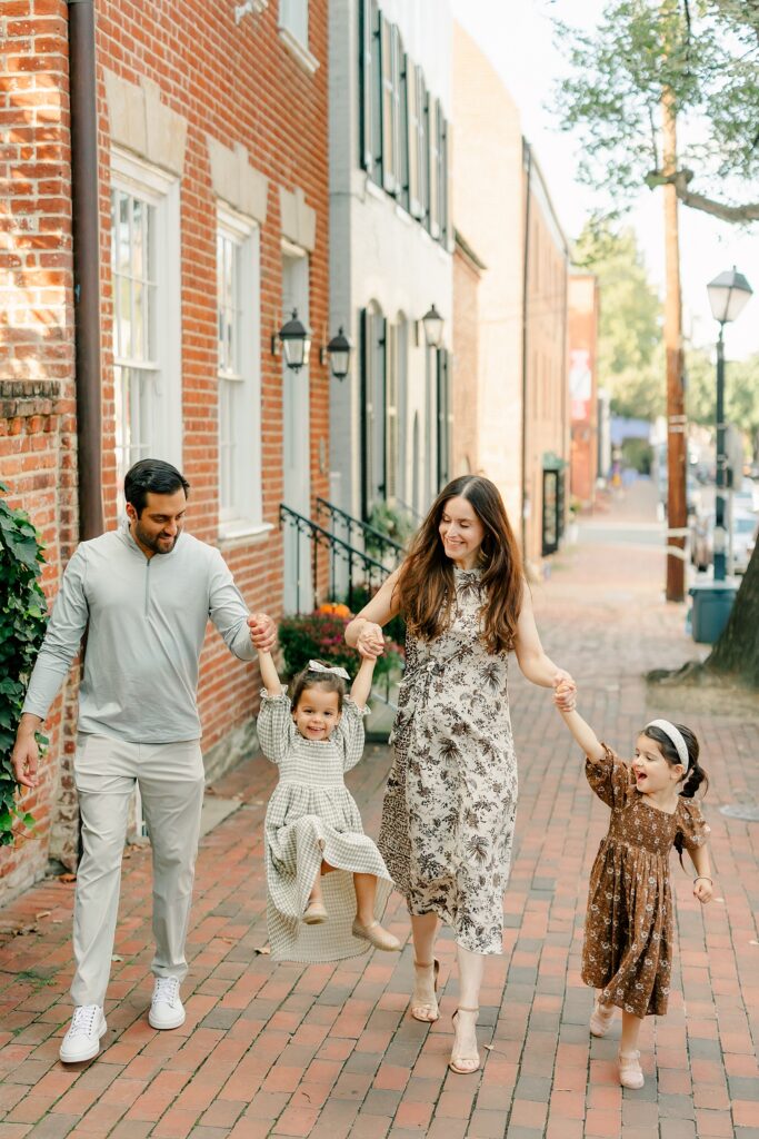 This year, we met in Old Town Alexandria, one of my favorite Northern Virginia spots for its blend of historic charm, cozy fall ambiance, and storybook streetscapes. From the colorful row-houses and cobblestone alleys to the tree-lined sidewalks and golden afternoon light, this session had the perfect mix of joy and warmth.